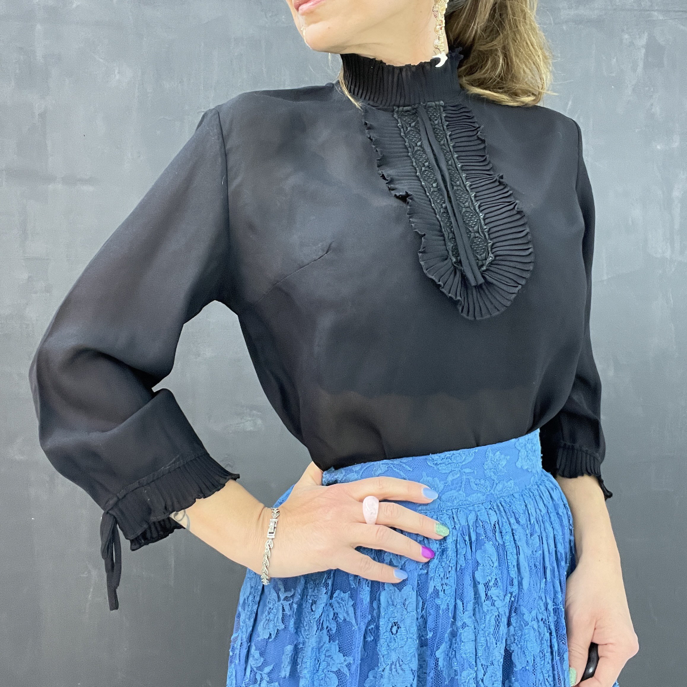Vintage blouse in good condition, small fraying at the bottom.